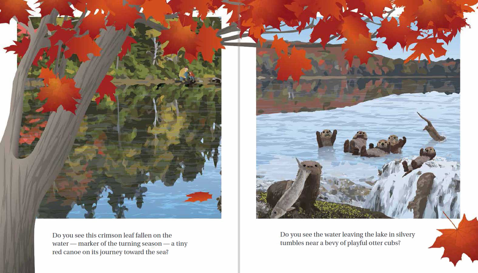 The poetic text and beautifully rendered illustrations show a child and grownup sharing experiences such as swimming alongside lake trout, paddling a canoe and star gazing, encouraging a caring connection to the natural world and the shaping of a sustainability perspective.